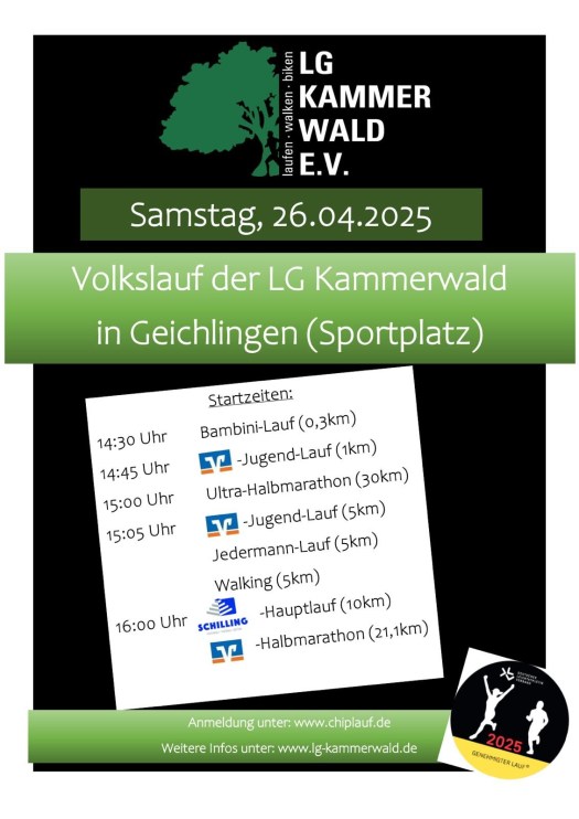 Veröffentlicht am 10. April 2025 von ortsgemeindekoerperich☀️ 28. Internationaler Volkslauf der LG Kammerwald – Sei dabei! 🌟 – 26. April 2025 – Sportplatz Geichlingen Teilen mit: Klicke, um auf X zu teilen (Wird in neuem Fenster geöffnet) X Klick, um auf Facebook zu teilen (Wird in neuem Fenster geöffnet) Facebook Gefällt mir Wird geladen …