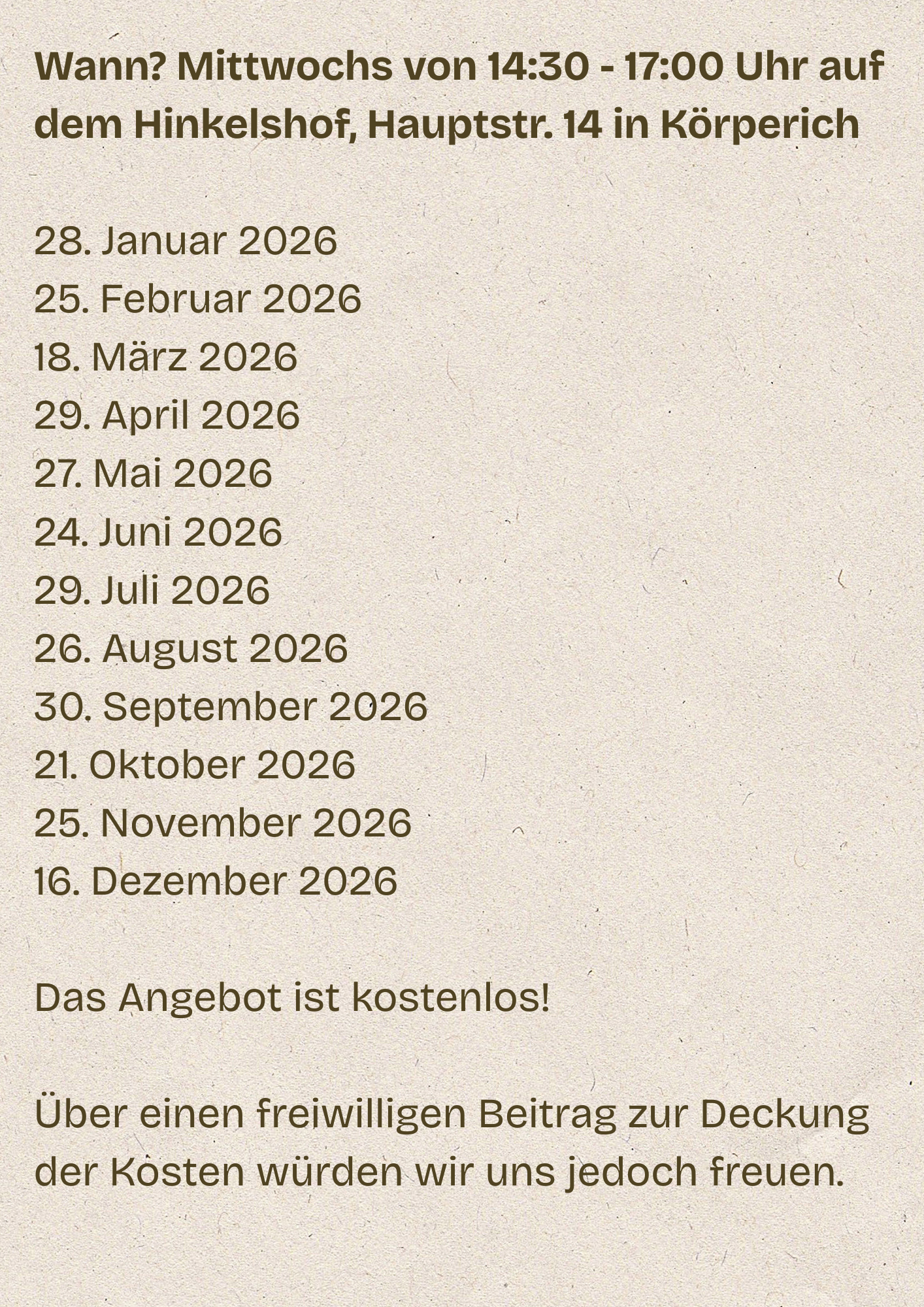 Genaue Termine erfahren Sie unter Nachrichten aus dem Dorf, im Mitteilungsblatt oder auf Facebook.