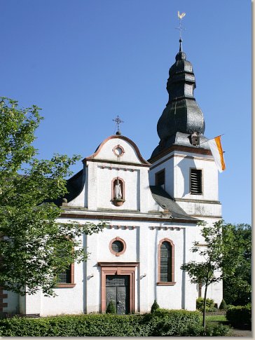 1924, neunzehn Jahre nach dem ersten Beschluß hierzu, wurde die alte Kirche, die die ganze Gemeinde mittlerweile nicht mehr fassen konnte, durch einen Querdurchbruch nach Plänen des Kölner Architekten Endler in neobarocken Formen erweitert. Der Haupteingang wurde an die Nordseite verlegt, die dem Schema einer hochbarocken Kirchenfassade nachempfunden ist Gleichzeitig erhielt der Westturm, der bisher wohl nur von einer flachen Schieferpyramide abgeschlossen war, ein vielfach geschweiftes Zwiebeldach. Die Ausstattung schuf in den Folgejahren Bildhauer Scheble, der für die Figuren der Gottesmutter und des Heiligen Josef, sowie die Darstellung der Kreuzwegstationen Bewohner des Dorfes zum Vorbild nahm.