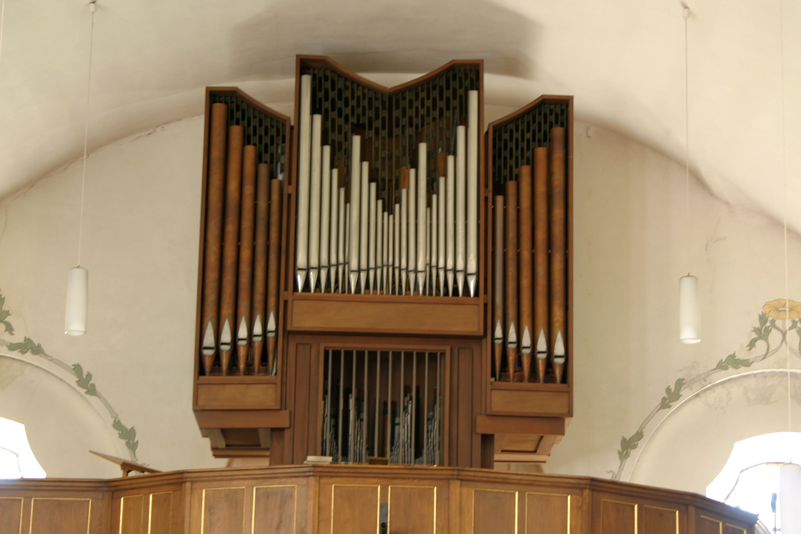 Wie sah nun die Kirche von 1790 aus? Es hat sich noch mehr von ihr erhalten, als es auf den ersten Blick scheint. Nicht nur der Chor, sondern auch der Ansatz des Schiffes und die ganze Westwand stammen noch aus dieser Zeit, von außen sind die betreffenden Partien gut an den glatt behauenen Sockelquadern zu erkennen. Ein Grundriß von 1826 und die Pläne zur Erweiterung in unserem Jahrhundert erlauben eine weitgehende Rekonstruktion des ursprünglichen Zustandes. Danach war die Kirche ein einfacher Saalbau mit vier Fensterachsen und einem eingezogenen (d.h. gegenüber dem Schiff etwas schmäleren) Chor mit je einem weiteren Fenster auf jeder Seite. Wohl alle Fenster waren rundbogig geschlossen, die Ecken des Haus weisen eine regelmäßige Quaderung auf. Das Chorquadrat hat einen dreiseitigen Abschluß, dem ehemals noch eine kleine Sakristei folgt. (In dieser Hinsicht stimmt der Plan von 1826 eigenartigerweise nicht.) Bevor der heutige klassizistische Westturm errichtet wurde (nach der Türsturzinschrift 1826), besaß die Kirche lediglich einen Dachreiter zur Aufnahme der Glocke. Im Turmuntergeschoß ist jedoch noch das alte Portal zu erkennen. Ob die Westwand darüber noch weiter gegliedert war, etwa durch eine Nische, ist nicht mehr zu erkennen. Vielleicht hat man auch schon 1790 daran gedacht, irgendwann einmal einen steinernen Turm zu errichten.